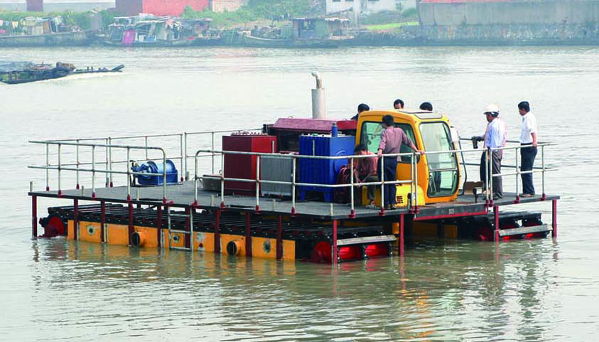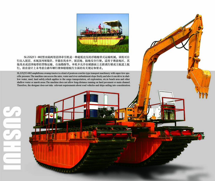 SLZZQYJ-002型水陸兩用沼澤牽引機是一種超低比壓的浮箱履帶式運輸機械。該機可自行出入泥沼、水域及河坡堤岸,并能在淺水中、泥沼地、陸地安全行駛。適用于灘涂地區(qū)、其他淺水或沼澤地帶的貨物運輸、石油勘探等。本機不允許在硬路面上長距離行駛或主航道上航行。故在設計上未考慮公路車輛行駛和船舶航行方面的有關規(guī)定和要求。